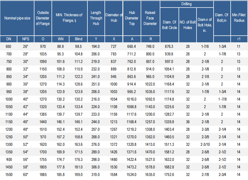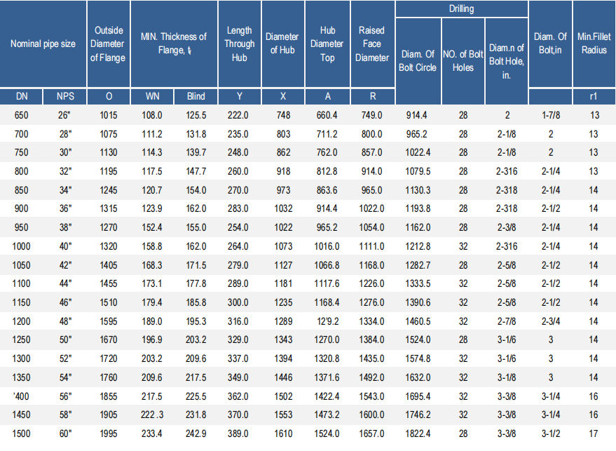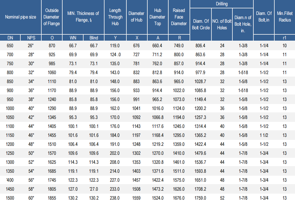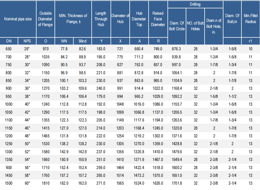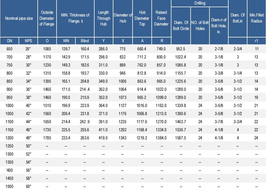 •Blind flanges may be made with or without hubs at the manufacturer’s option